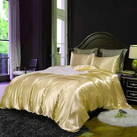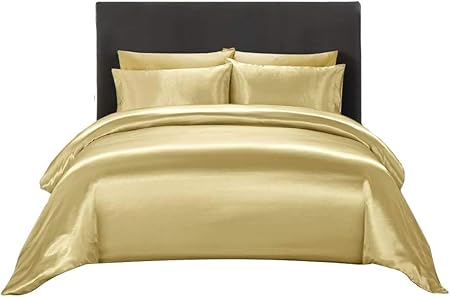 3-Piece Hotel Quality Luxurious Duvet Cover Ultra Soft Silky Satin with 2 Pillowcases(California King Size, Gold)